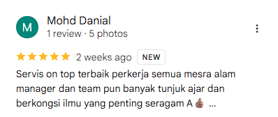 3. Semua technician kami mempunyai Sijil Kemahiran Malaysia (SKM)