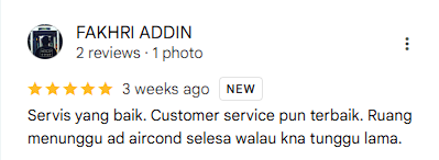 1. Kami sediakan ruang menunggu yang selesa, bersih dan berhawa dingin